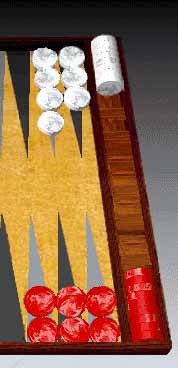 "It's a take!" he said defensively. "It's a three roll to three roll position." "But you've got 7 checkers left!" I declared. "Mmmm...you're right", he admitted. "These darn bifocals messed up my vision. I just can't get accustomed to these new glasses." This evening the backgammon gods were looking out for the visually impaired players. My opponent rolled a set of fours sandwiched between my 3-1and 2-1. The next thing I saw was a big, ugly, blue 8-cube lowered in front of me . . . |