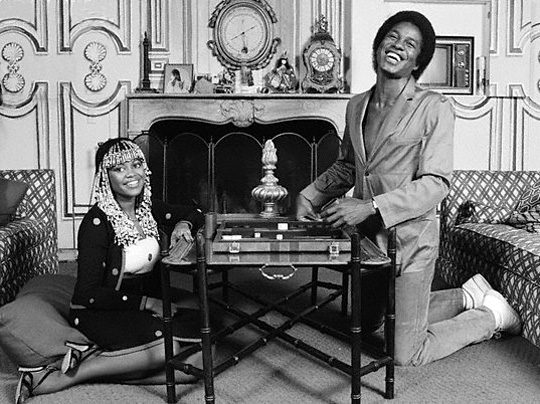 | JERMAINE JACKSON and wife HAZEL GORDY JACKSON play backgammon at home in 1980. | ||||||||||||||||
